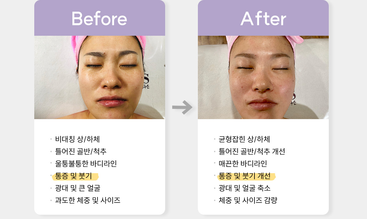 얼굴 변형의 원인인 틀어진 척추와 변형된 체형을 바로 세우게 되는